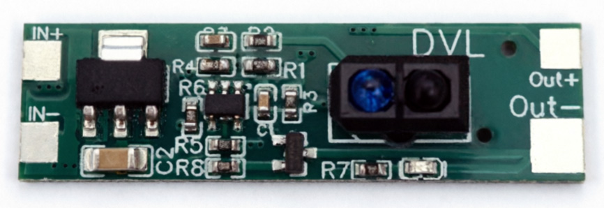обнаруживает препятствие на расстоянии до 7 см: при приближении объекта к