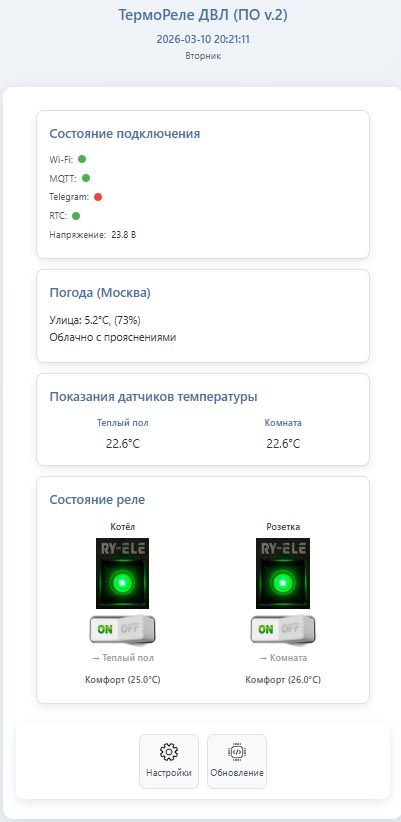 Модуль «Термореле ДВЛ» представляет собой готовое решение для автоматизации систем отопления, сочетающее точность промышленной регуляции с возможностями современных IoT-технологий. Устройство обеспечивает надежную эксплуатацию климатических систем при минимальном участии пользователя.